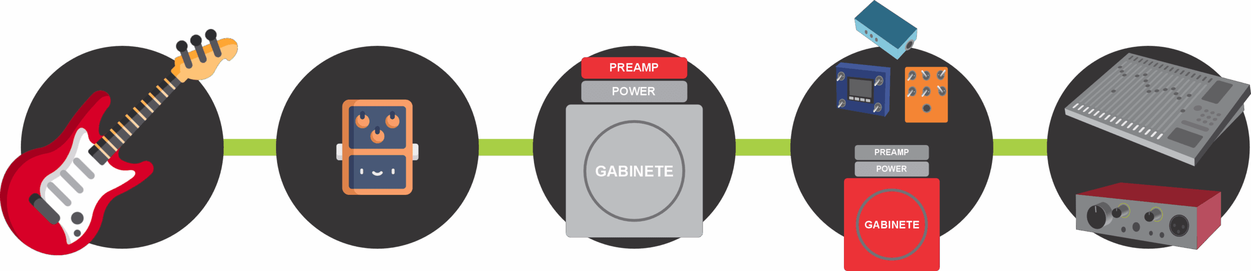 Além disso, na maioria das pedaleiras, você tem simuladores de amplificadores, que precisam ser cuidadosamente selecionados e equalizados, assim como em um amplificador real.